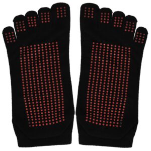 These special socks have a non-slip rubber grip which makes them ideal for barefoot activities such as Yoga, Pilates, Dancing, Martial Arts, Fitness and more. The five-toe construction enables independent toe movement and thus activates the muscles in the foot, and improves the comfort of wearing.