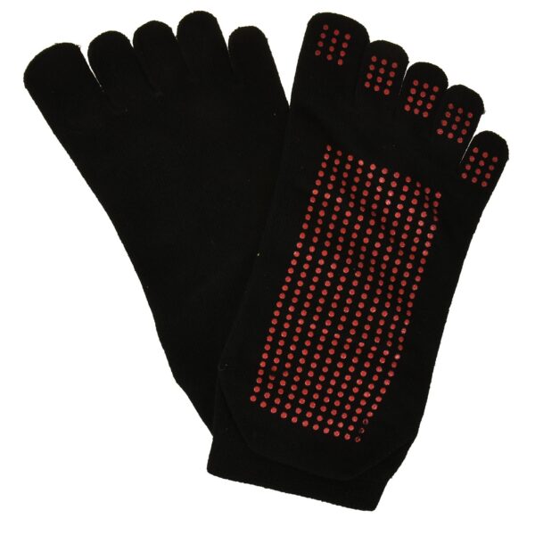 These special socks have a non-slip rubber grip which makes them ideal for barefoot activities such as Yoga, Pilates, Dancing, Martial Arts, Fitness and more. The five-toe construction enables independent toe movement and thus activates the muscles in the foot, and improves the comfort of wearing.