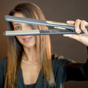 230° HEAT: The extra- long ceramic covered plates quickly heat up to a high of 230° for Salon quality straightening for all hair types.