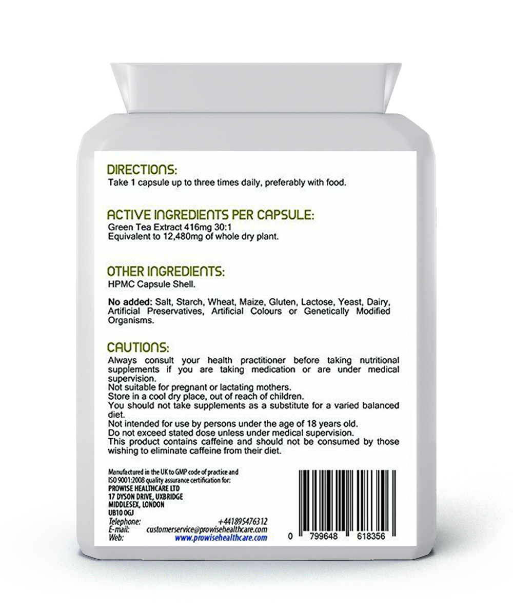 Prowise Green Tea Health+ Capsules provide the most potent green tea formula on the market today. Every capsule is bursting with the equivalent of 12,480mg of pure green tea and is produced to the highest standards in the UK. Prowise Green Tea Health+ Capsules are manufactured in the UK to GMP code of practice and ISO 9001 quality assurance certification.