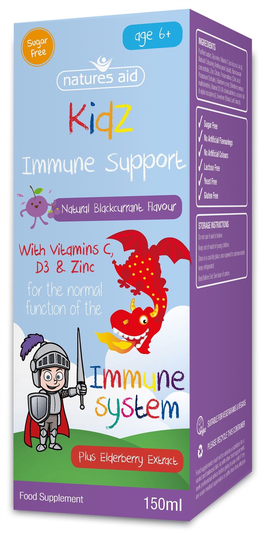 Natures Aid Kidz Immune Support liquid contains Vitamins C, D3 and Zinc which contribute