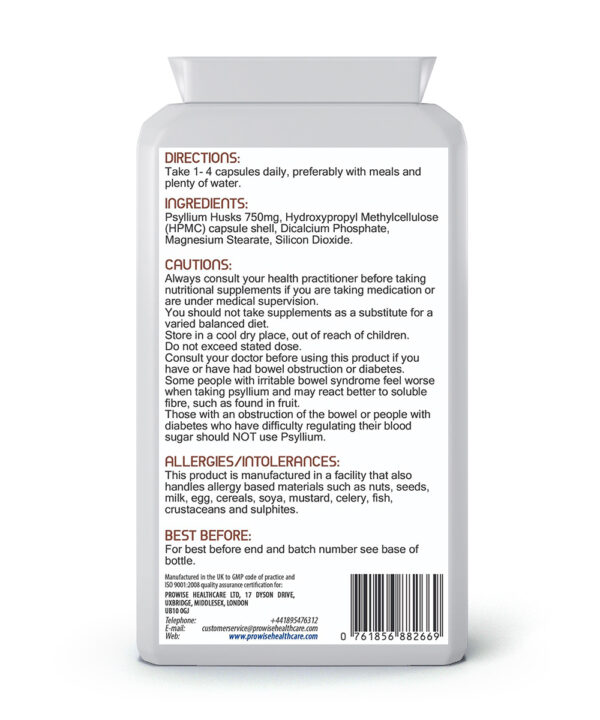 Prowise Psyllium Husks is a supplement manufactured in the UK under GMP code of practice for guaranteed quality and safety.
